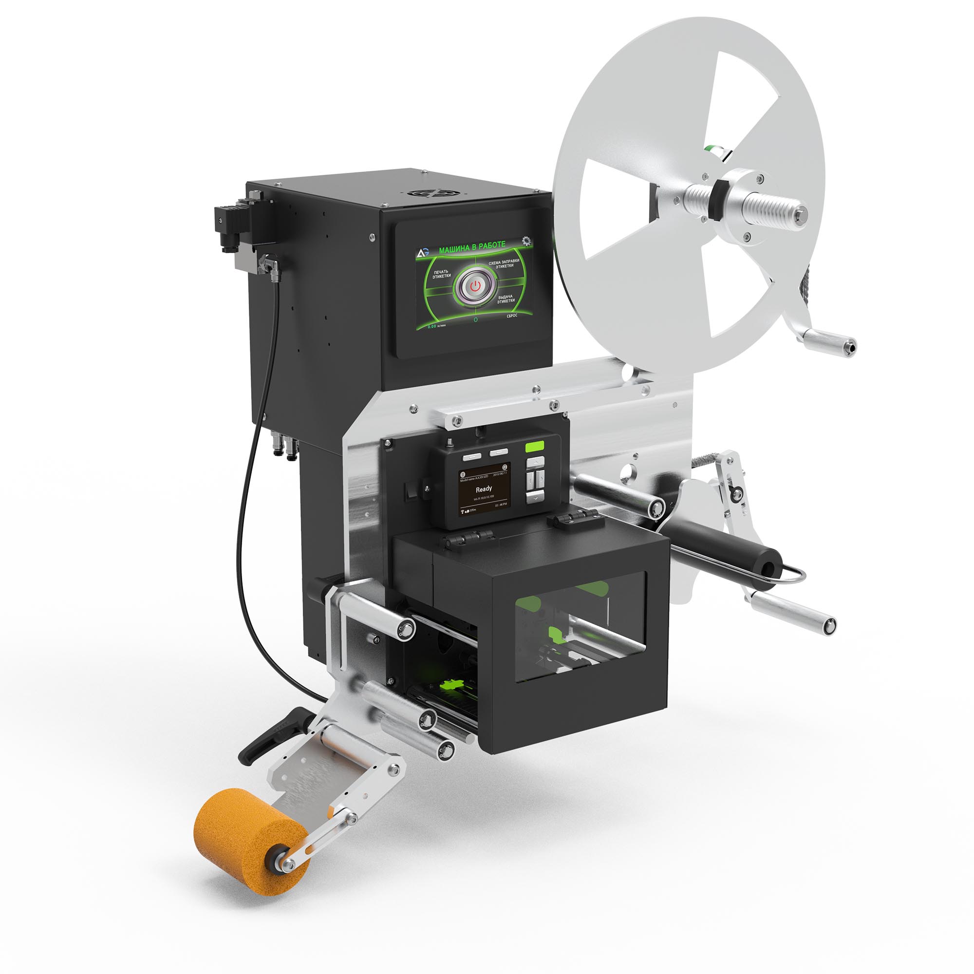 Модуль представляет конструкцию с необходимыми валами, отделителем этикеток. Позволяет механически регулировать вылет этикеток на ноже-отделителе.