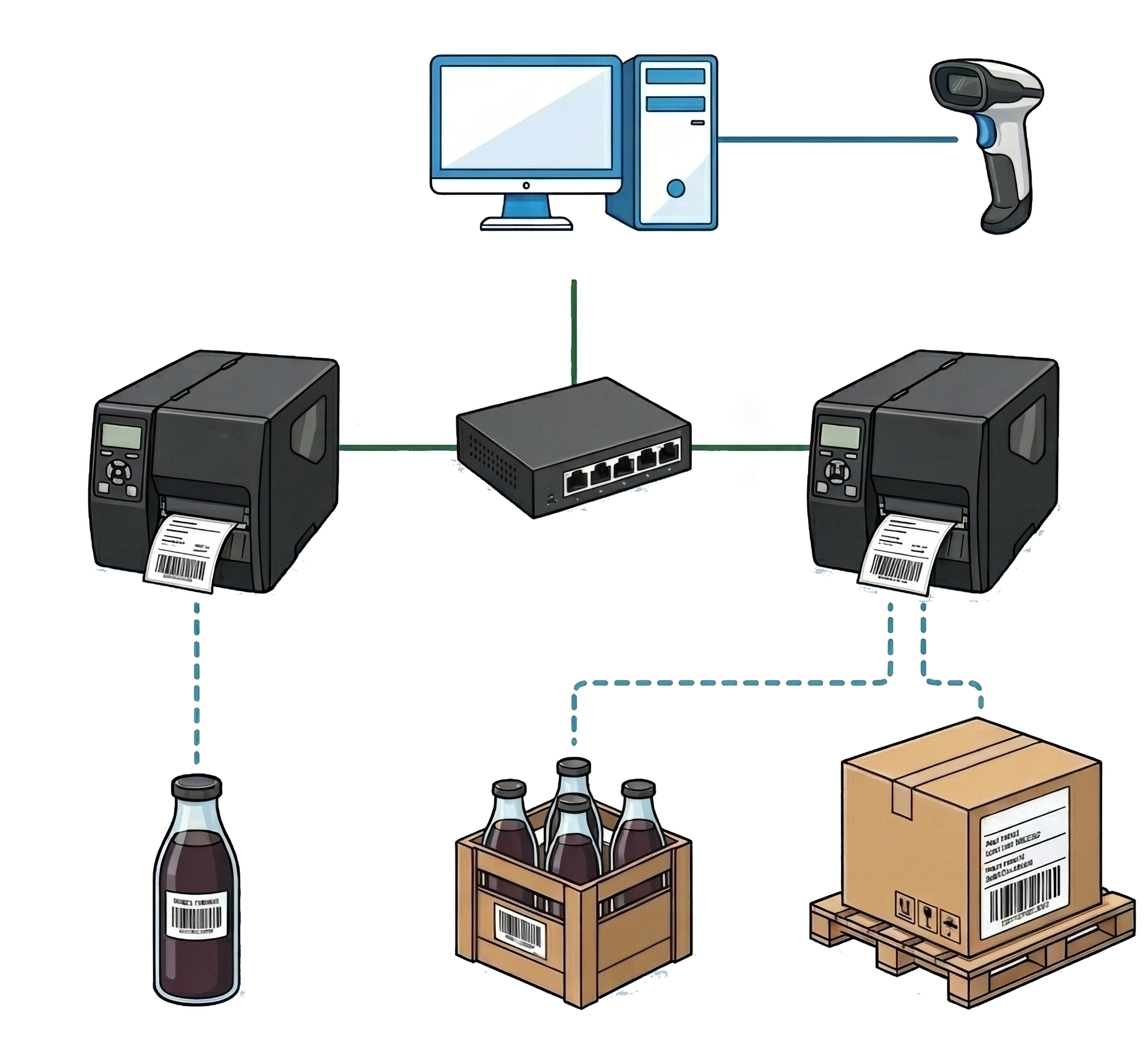 Если на производстве есть термотрансферные принтеры, сканеры, камеры технического зрения и тд.