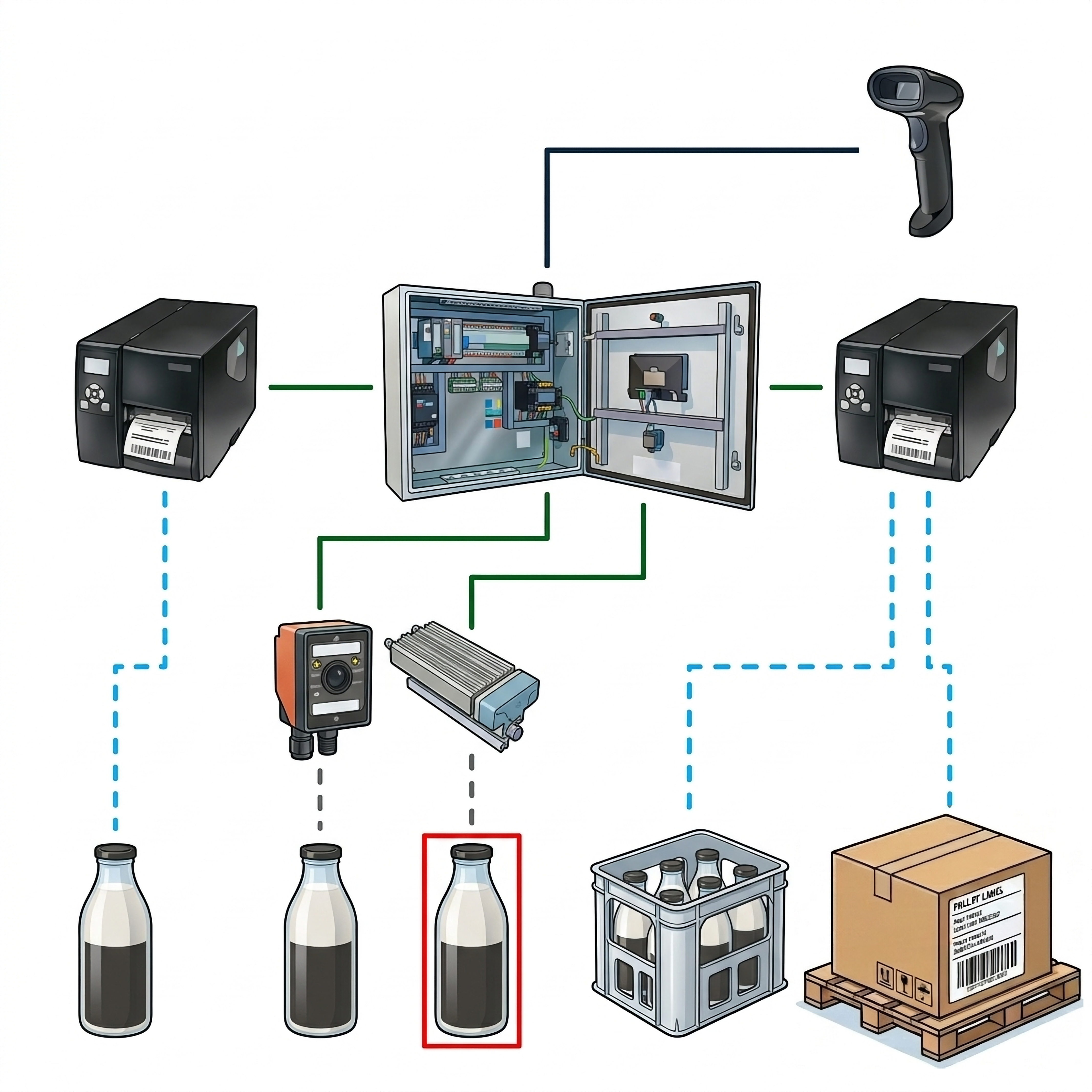 Подходит для автоматическая сериализация и отбраковка для линий с производительностью до 6000 шт/час. Для линий с более высокой производительностью решение не подойдет.
